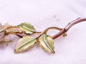 花はラインストーンがぎっしりと飾られ、枝と葉はエマイユです。